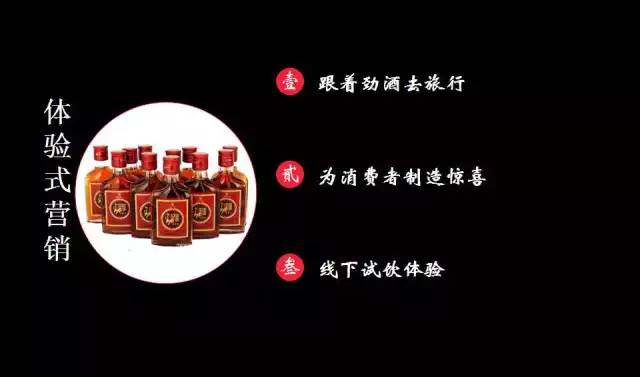 为了尽快使品牌诉求进一步落地,近几年劲酒加大了品牌体验营销的力度,劲酒在体验式营销上大做文章。体验式营销,简单的讲,就是通过消费者的切身参与体验,从而完成对产品的认知,进而形成对品牌的忠诚。