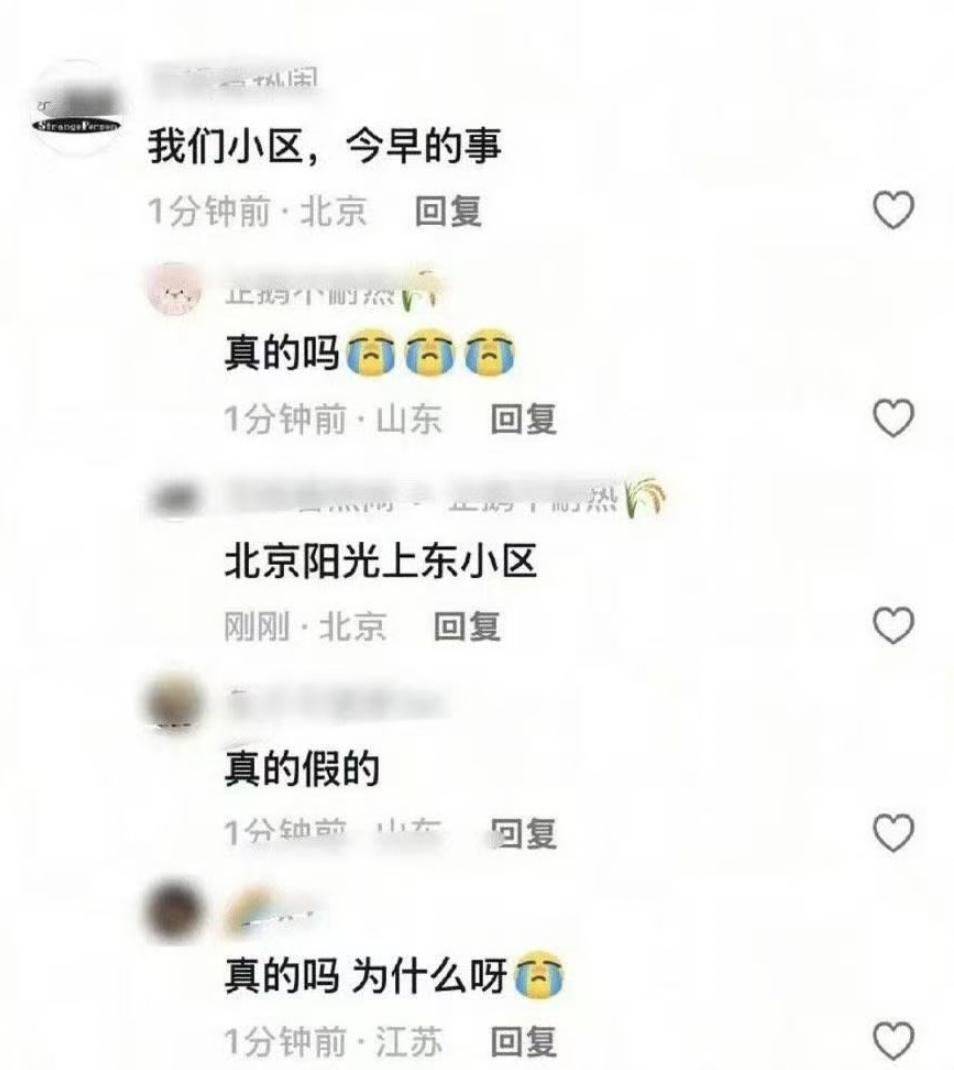 有网友爆料称是在朝阳区阳光上东小区坠楼,潇湘晨报记者联系小区物业,工作人员称小区凌晨确有坠楼事件,“具体看官方报道吧,我们也不是很清楚,已经报公了,该怎么走程序就怎么走程序。”