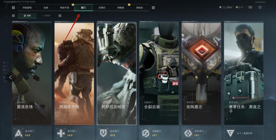 第三把,之前改枪任务ak74u改装,(记得提交任务),买头修甲修(跟上图一样还是在部门,军需处,医疗部门)(记得提交任务),让然后ak74u进图杀小兵,还有调查,拾取任务道具,出来领取任务奖励,然后交易行上架3个拍品,基本就8级了