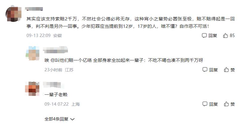 有的人认为220万太少了,就应该赔个2000多万让孩子长长记性。
