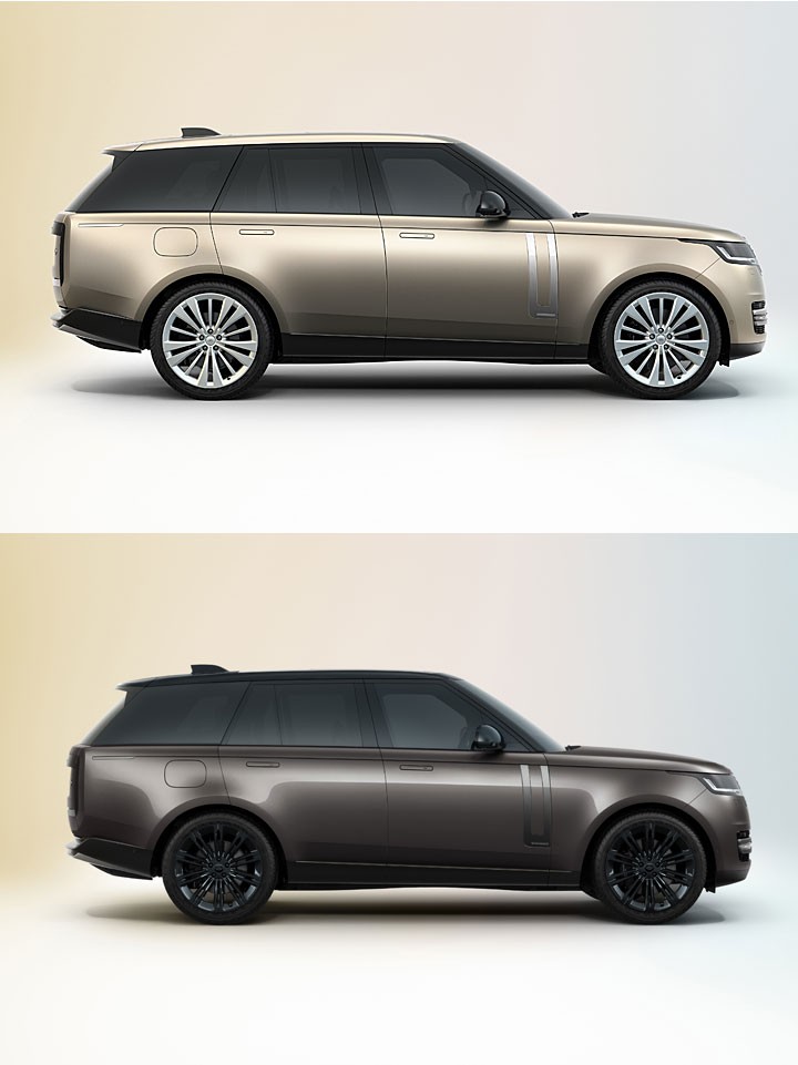 新一代揽胜在车侧则改采隐藏式车门把设计,车门导入 Power Assisted Doors 电动科技,除了可以更细致的动作自动吸附关闭,甚至拉开门把还会微微将车门自动弹开 10 度方便进出,并且 4 个车门也具有危险检测与电动防夹功能,还可透过车内的 Pivi Pro 荧幕做开启、甚至是越野时也能电动开启。车身在前门处有着 U 型的银色饰板装饰、取代过去类鳍片的设计,兼线延伸至车尾最后方还有金属饰条收尾点缀。