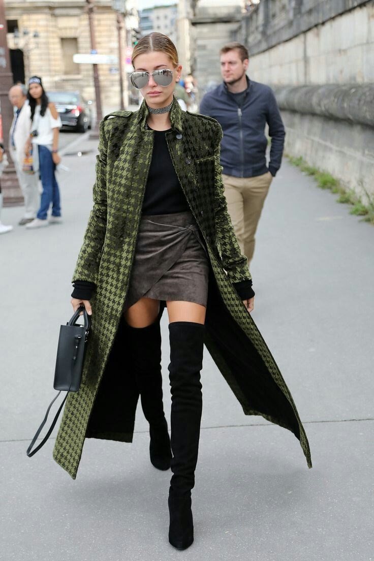 想要达到时髦且保暖的效果,长款上衣的长度既不能过长也不能太短,大约刚过臀部位置即可,这样与高筒靴组合在一起就能达到"下衣失踪"的既视感了。当然在上衣的选择上,我们也可以侧重一些保暖效果好的单品,从而让搭配在既保持风度的情况下又能留有温度。