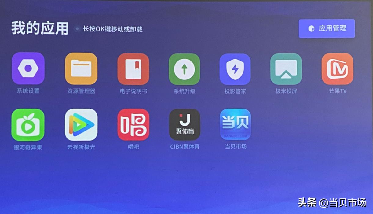 完成这一步,就可以成功将当贝市场推送至极米投影仪上,用户就可以通过当贝市场下载各类软件了。