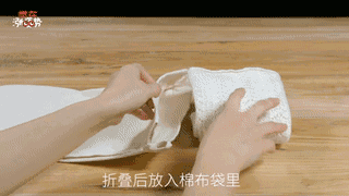 把毛衣折叠成一个正方形,放入一个棉布袋子里。