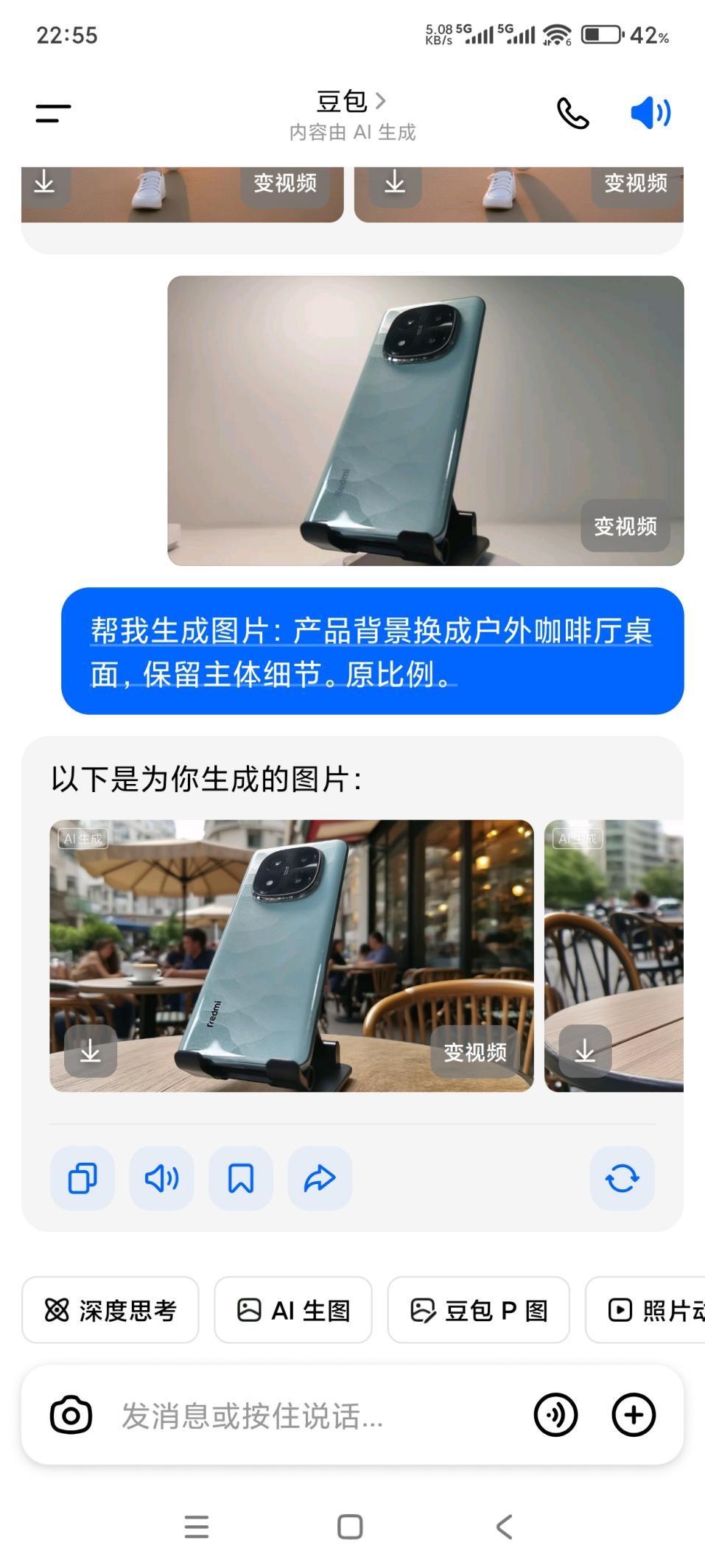 2、产品背景换成户外咖啡厅桌面,保留主体细节;
