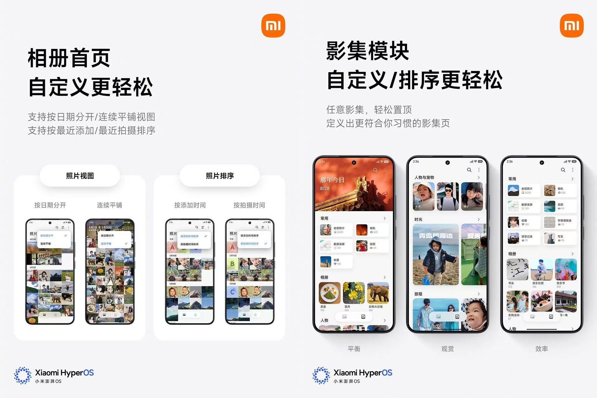 搭载HyperOS 3 的小米手机,系统相册首页及影集页支持自定义排序,可以选择是按照照片原本的拍摄时间还是按照获得时间排序,同样支持跟苹果手机贴贴互传。此外,隐私安全也进行了升级:双重认证登录、高级数据保护、设备查找升级、全新安全访问控件……