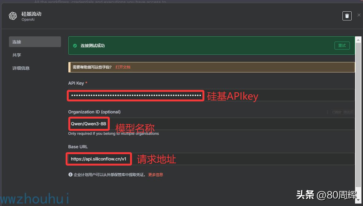 弹出的模型设置,我们这里设置一下硅基流动api 秘钥,模型这里我们选择Qwen/Qwen3-8B