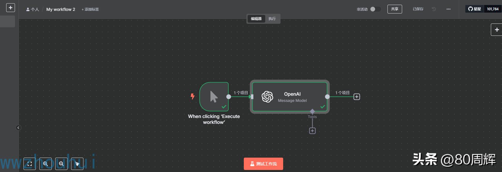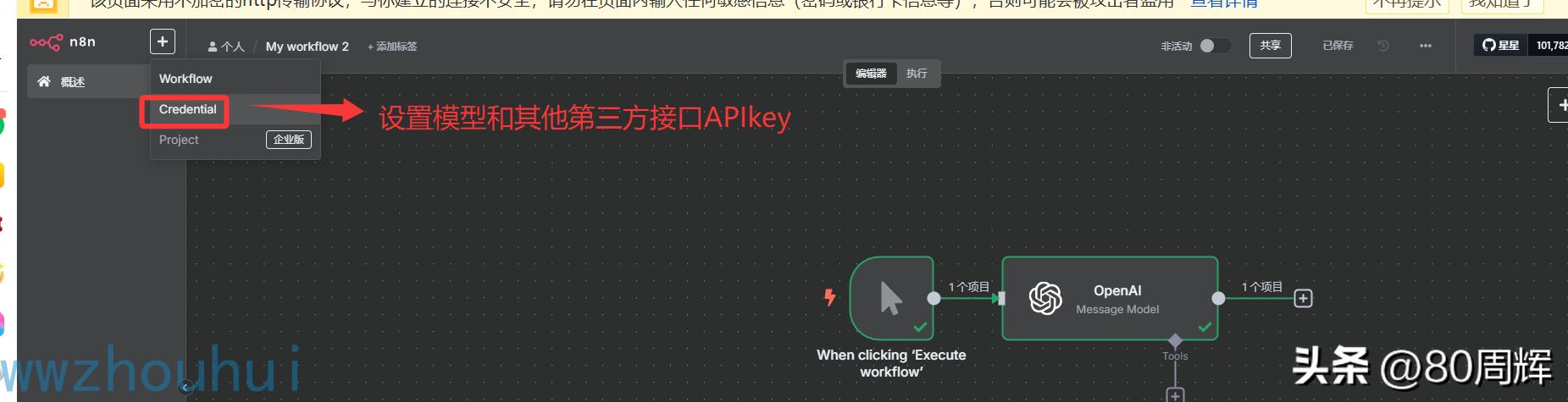 n8nio/n8n启动后我们看到汉化后的界面了。