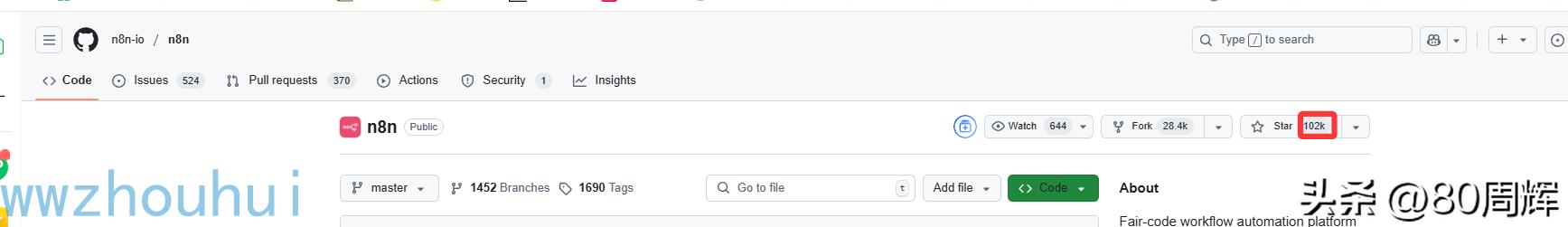 N8N目前发展的速度非常快,在github上目前已经突破100K了,超过dify的start 点赞星了。
