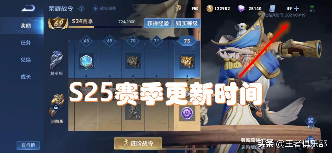 首先是赛季战令更新时间。众所周知,王者荣耀每个赛季的战令会在新赛季开启前1-2周结束,而目前游戏中写明了,S24赛季的战令会在9月19日结束,按照这个节奏来看,9月底就是S25赛季的更新时间。