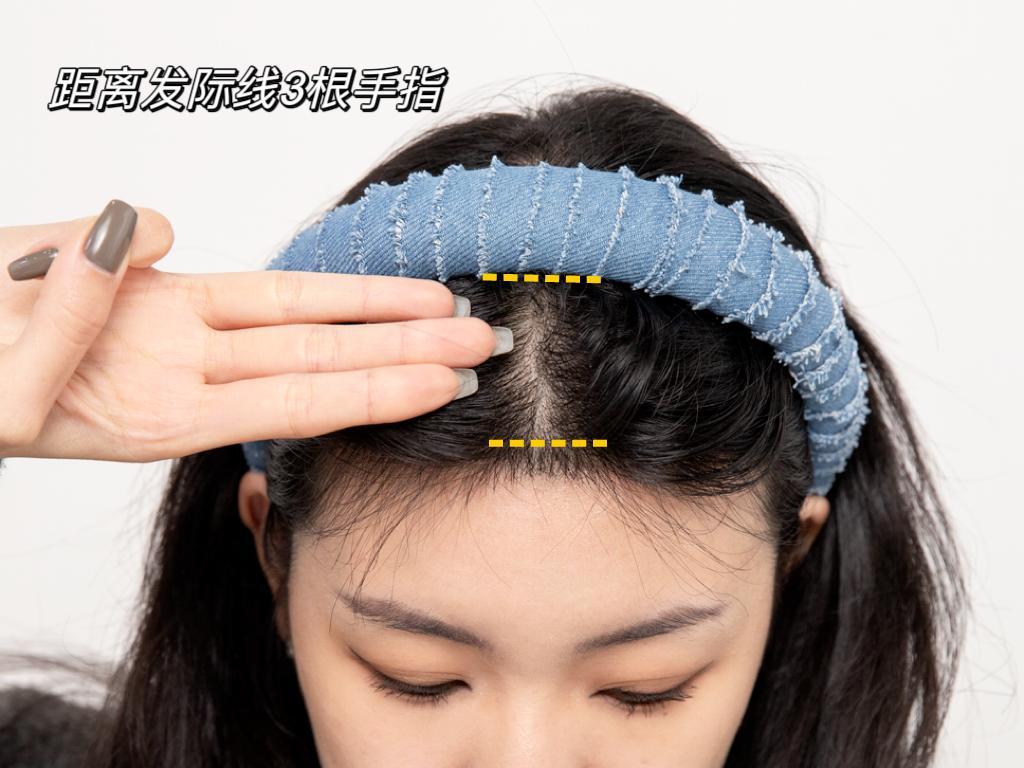 发箍就定位在大概距离发际线3根手指宽的位置: