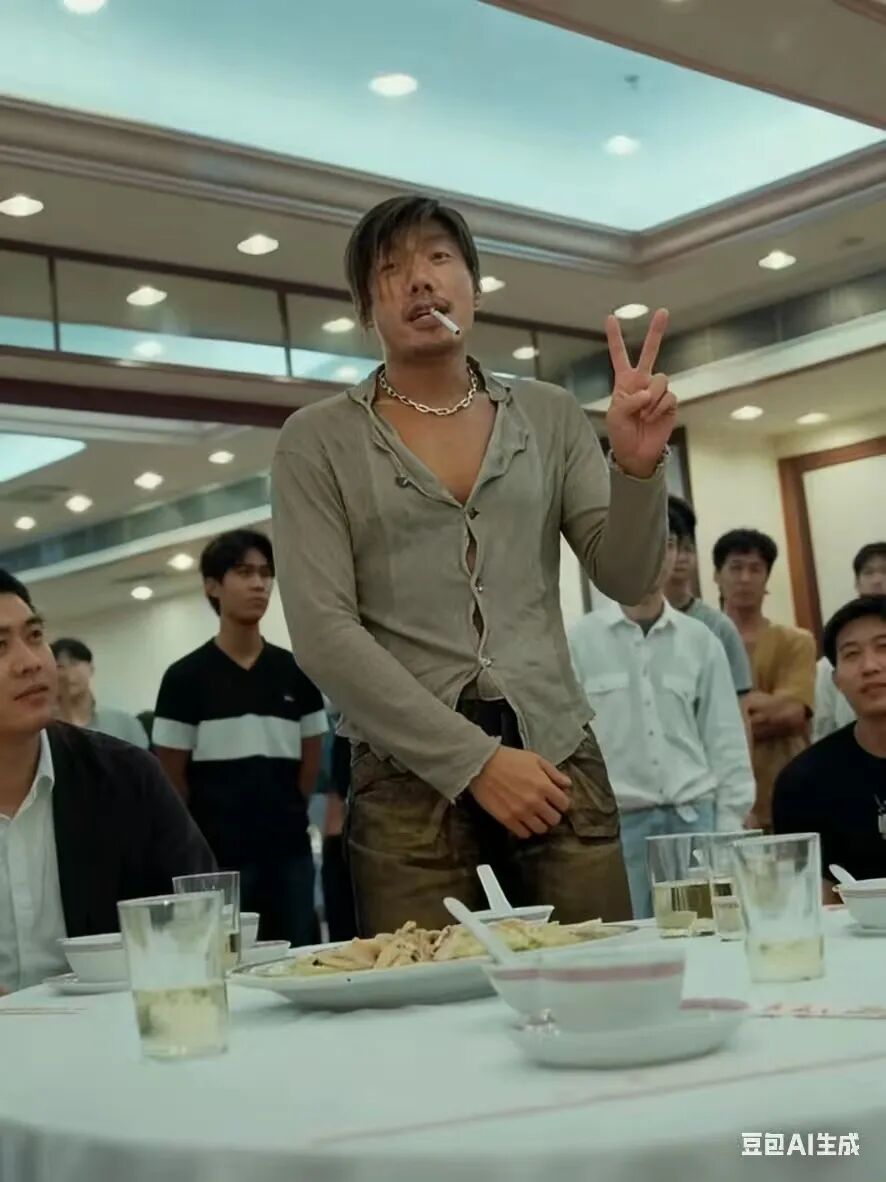 我们找了一张《古惑仔3》中的经典照片,就是感觉气氛不太好,哥们下一秒就要掀桌子了。