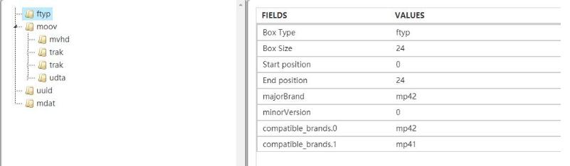 可以看到这份标准的mp4视频根路径上有四个box -- ftyp、moov、uuid、mdat