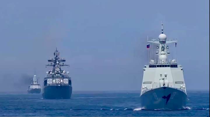 “海上联合 - 2025”联合演习于今年8月1日至5日在俄罗斯符拉迪沃斯托克附近海空域举行。演习结束后,中国海军绍兴舰、千岛湖舰与俄罗斯海军“特里布茨海军上将”号大型反潜舰等3艘水面舰艇及2架舰载直升机组成联合编队,又在西太平洋某海域组织海上联合巡航。