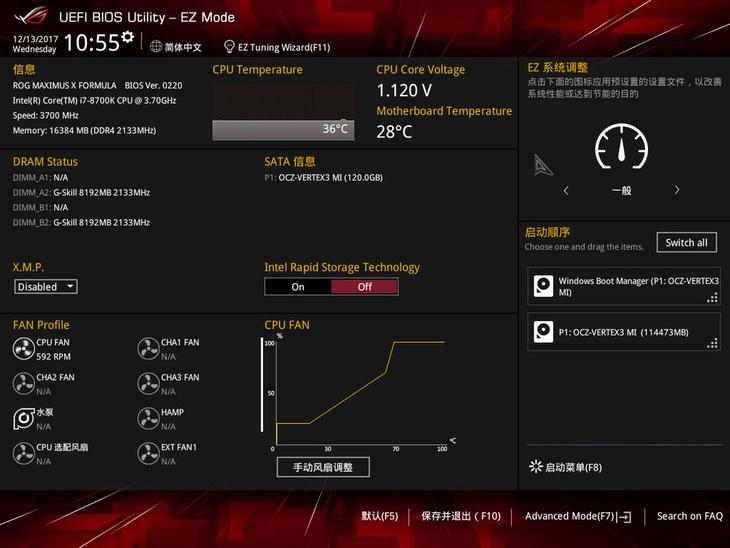 首先一进入BIOS一般会显示电脑的基本信息,比如:温度、电压、风扇状态、硬盘状态、启动顺序、内存等等各种配件信息。在这个界面一般是没办法修改什么参数的,不过语言的修改一般可以在这里进行,现在大部分的BIOS都支持中文,其他参数则需要进入高级模式或者更多里面进行修改。