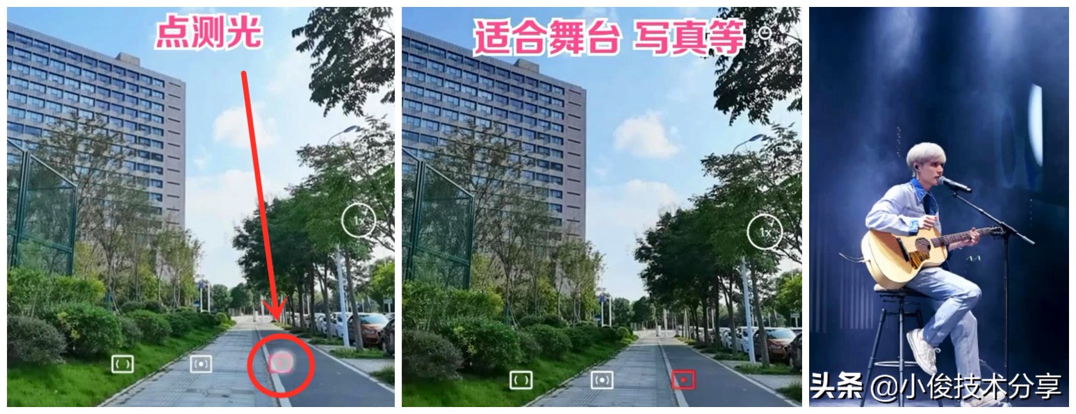 第三图标表示的是点测光,通常情况我们拍摄写真以及舞台效果,就需要选择这个模式,这个模式拍摄出来的舞台效果会更加逼真动人!