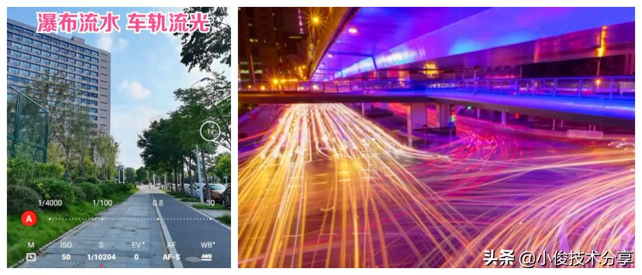 慢门则可以拍摄瀑布流水以及车轨流光等场景效果!