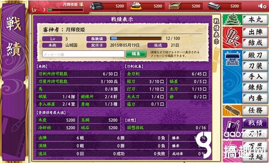 在里面可以看到玩家目前具体的游戏情报,诸如获得经验值、拥有部队数、拥有工房数、刀剑所持数等。