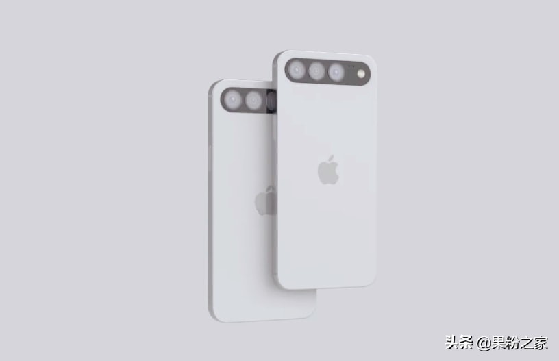 从渲染图来看,iPhone 14 Pro 外观上最大的变化就是将后置矩形相机模组,改成“i”型后置相机模组,使其排列成一横排。机身背部依旧印有苹果Logo,同样采用直角边框设计,背面整体外观看起来有点像一个“防爆盾”,虽然外观上看起来还不错,但小编(果粉之家)觉得这实现起来难度还是很大的,后相头占据了上半部分,就会导致面容组件和前像头无处安放!