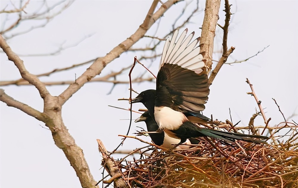 比如,它们往往会把巢穴的修筑地点,放在大树的中上方位置,而且通常会选择在树杈的中间部位,以这种方式来提高巢穴的整体稳定性,同时还能在树叶、枝条的遮挡下,最大限度地减少被老鹰、蛇等天敌发现的几率,另外还可以减少大风大雨等恶劣天气对鸟巢的影响。