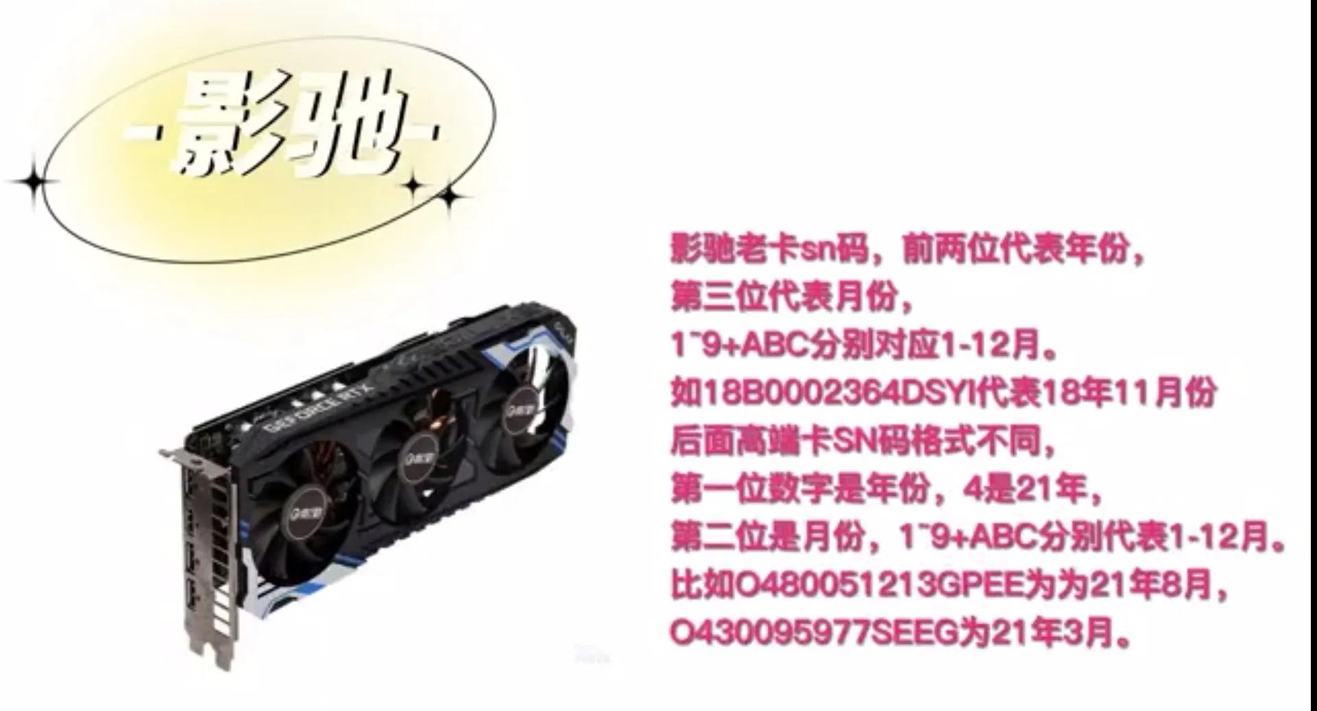 这里下面给出各显卡主流品牌根据SN码规律自查出厂日期的方法,可以直接保存抄作业。