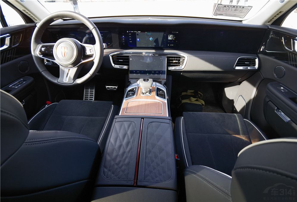 档把部分红旗E-HS9也采用了新的设计风格,用上了大量的镀铬材料并加上了木纹装饰,设计上更为精致。