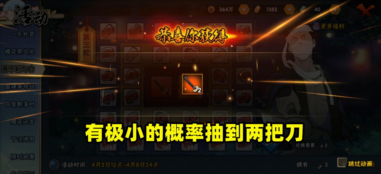 火影手游:漂泊武士再不斩价格比预期良心,有人直接抽到两把刀