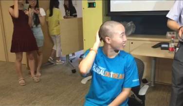 20分钟后,倩倩的光头剃成了。所有人鼓掌为她庆贺,为她的勇气,也为她的善心。公司两组队员众筹到5万多元钱,公司将按1:1比例配捐到“亲青筹"平台。