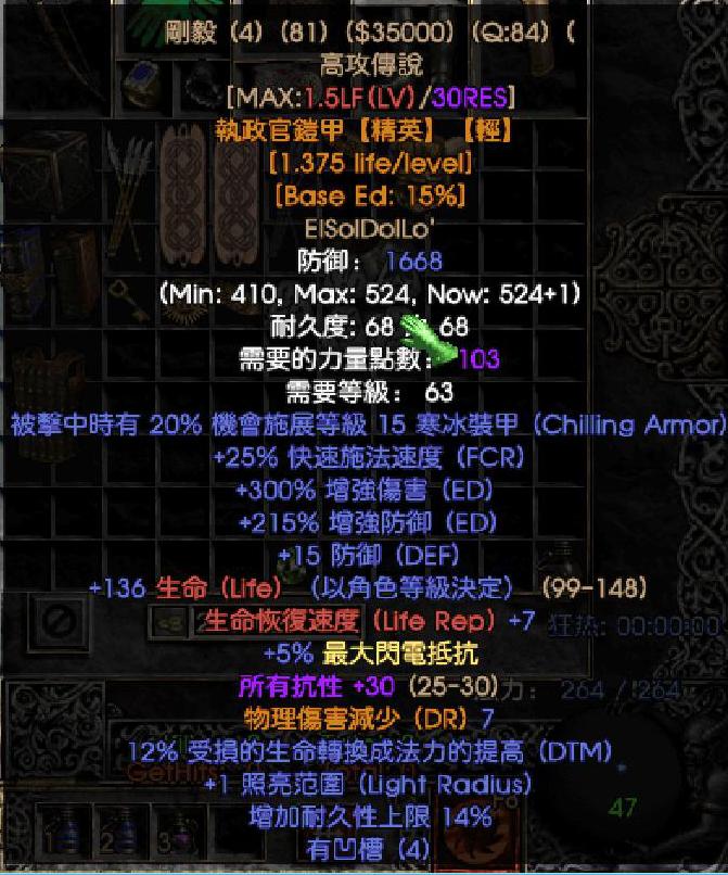 精神几乎是法系必备,2skill, 35%FCR,大量抗性,已经远超所有暗金盾