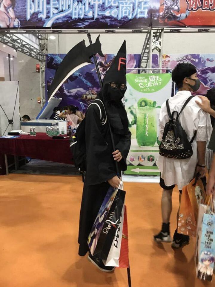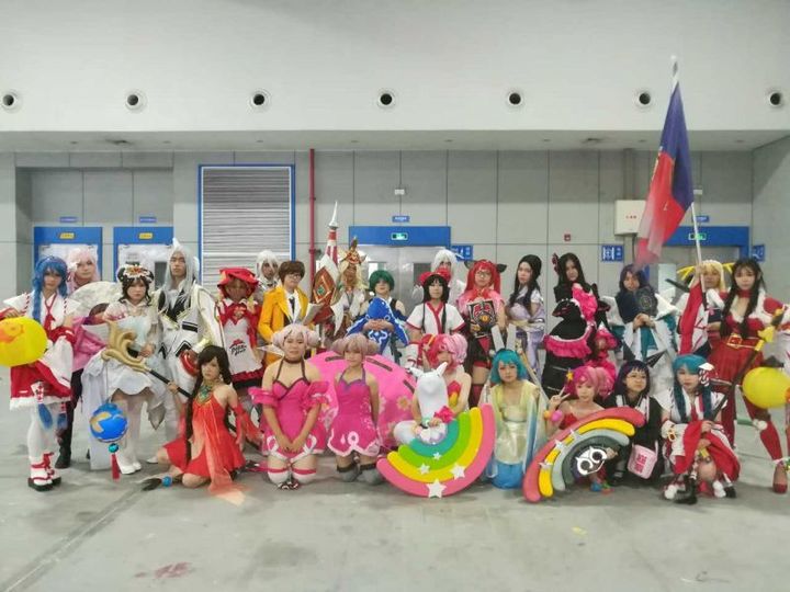 本次漫展中一支自己组织的cosplayer团队,cos了王者荣耀游戏中的全部成员,他们的口号是:王者相见,打成一片。