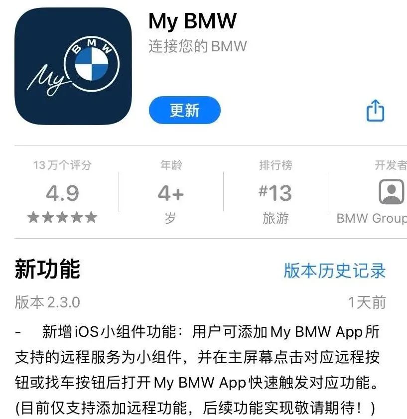 现在终于在最新版本My BMW APP中提供iOS小组件功能!
