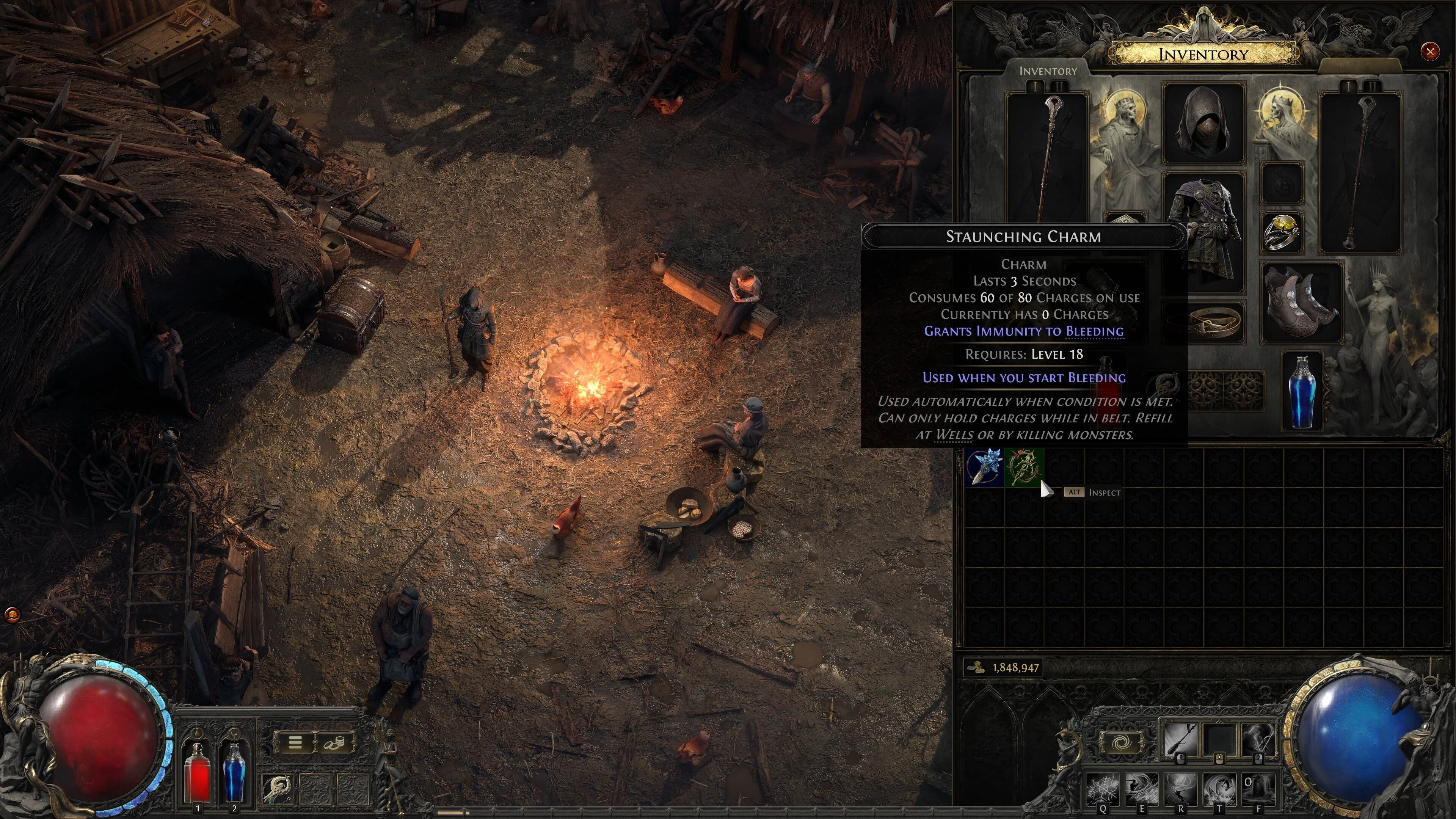 关于药水新机制。没了,全没了!《流放之路2》中只提供两种药剂,它们分别恢复玩家的血量和蓝量,此外没有其他任何作用。而且各自仅能装备一瓶。现在药水,真的只是药水,不再有其他花里胡哨的效果。