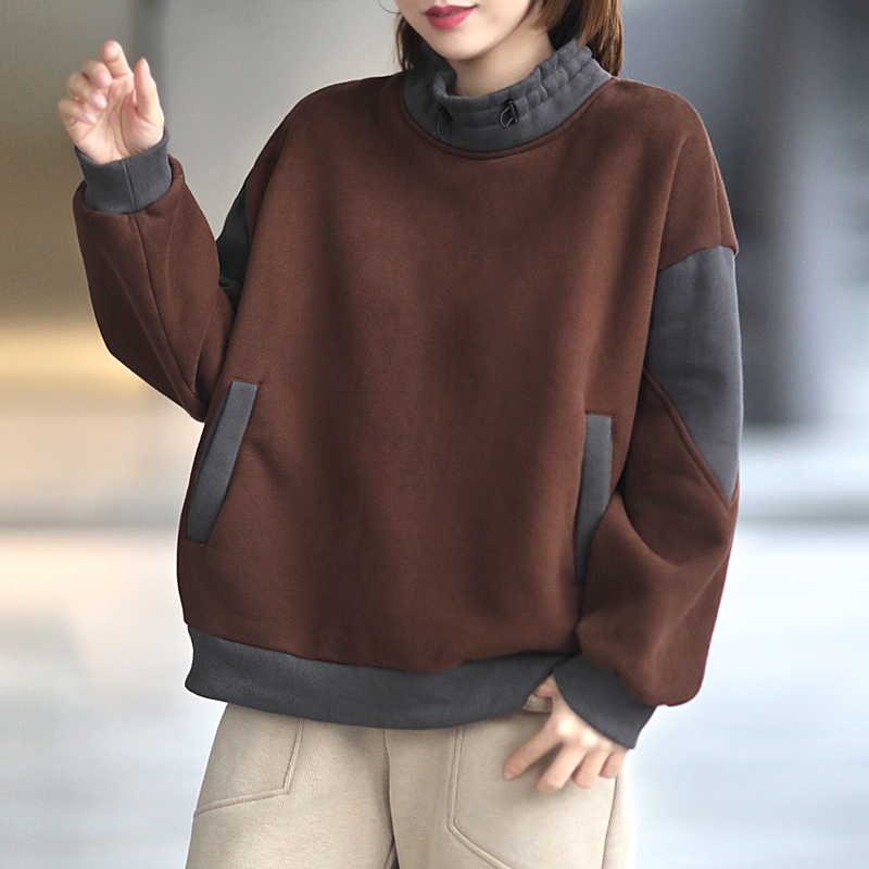 拼接假两件撞色风格设计的一件加绒卫衣。真的是太好搭配了,实穿性很强。宽松慵懒的衣身,对身材一点限制也没有,很是大气。不管是单穿,还是搭配一件棉服马甲,都很显格调,很有气场。