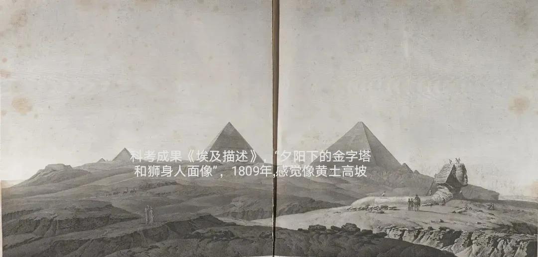 说到金字塔,就不能不提拿破仑团队,因为从他的那句四千年的文明开始,今天的吉萨金字塔和狮身人面像才算是正式出场。对了,还有所谓破译埃及文字的罗塞塔石碑。不过在1809年的《埃及描述》里面绘制的狮身人面像和金字塔,还是和今天略有区别,而且基本只有个头。作为拿破仑的御用画家德农1802年的测量图,竟然和1809年的狮身人面像都完全不一样,七年之痒吗?