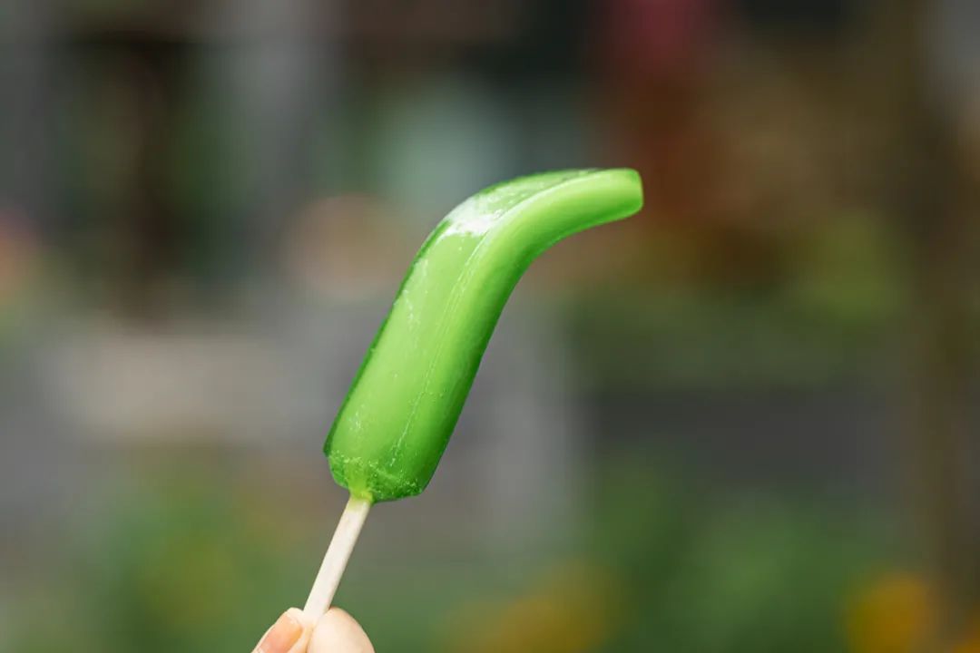 口感滑溜溜的,吃上去是青苹果味的,像是在吃果冻,又好吃又好玩。绿舌头消失了一段时间,还好现在回归了,售价2-3元一根。