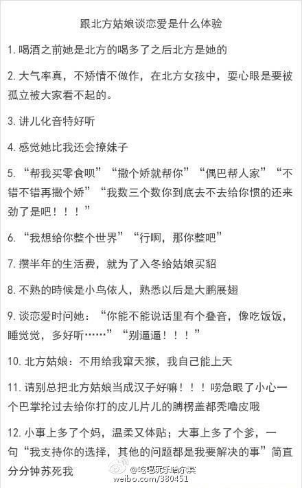 跟北方姑娘谈恋爱就是感觉她比自己还会撩妹子。。。。