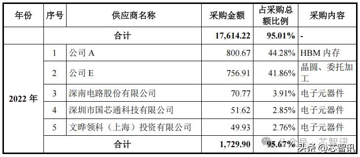 报告期各期,沐曦股份前五大供应商采购金额占当期采购总额的比例为 95.67%、95.01%、91.30%和 93.87%,前五大供应商采购占比相对稳定。其中,公司 D、公司 E、公司 C 为芯片供应商,公司向其采购晶圆及委托加工服务;公司 A 为HBM 内存等产品知名供应商,公司向其采购 HBM 内存,因此公司对上述供应商采购金额相对较高,不属于对单一供应商的依赖情况。报告期内,公司不存在对单一供应商采购比例超过 50%的情况。