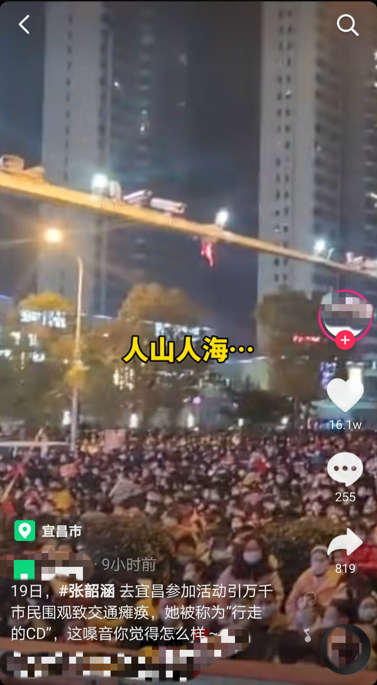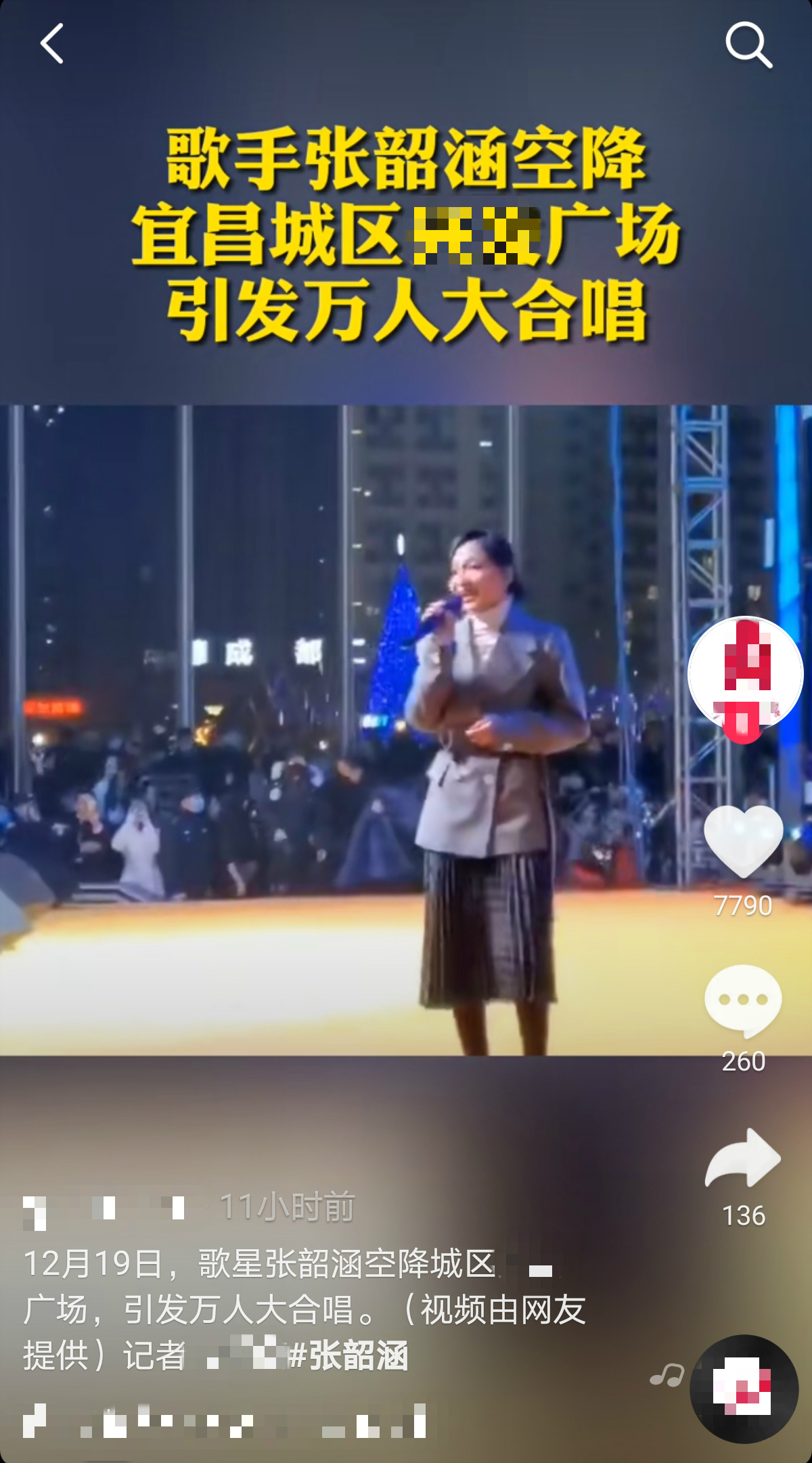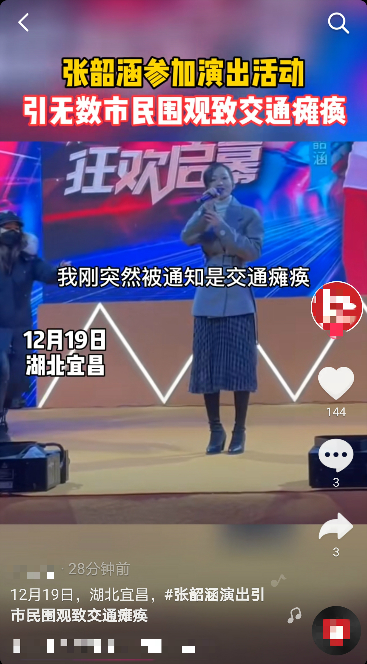 12月19日晚,一段张韶涵突然现身在湖北宜昌某商场进行商演的小视频在网络上疯传。画面中,现场人山人海的,好不壮观。