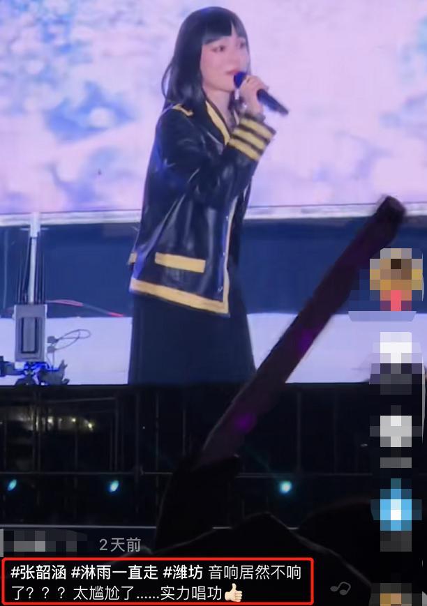 就在11月中旬,张韶涵在山东潍坊商演的时候,就遇到了唱到一半音响不响的状况。当时她反应迅速,直接不要伴奏在现场清唱起来,展现自己的一流唱功,没成想,却被网友诟病说:“唱功确实不俗,但是也太尴尬了”。
