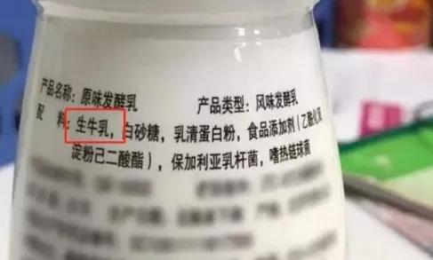 买酸奶时要看配料表,真正的酸奶配料表中的第一位应该是生牛乳。
