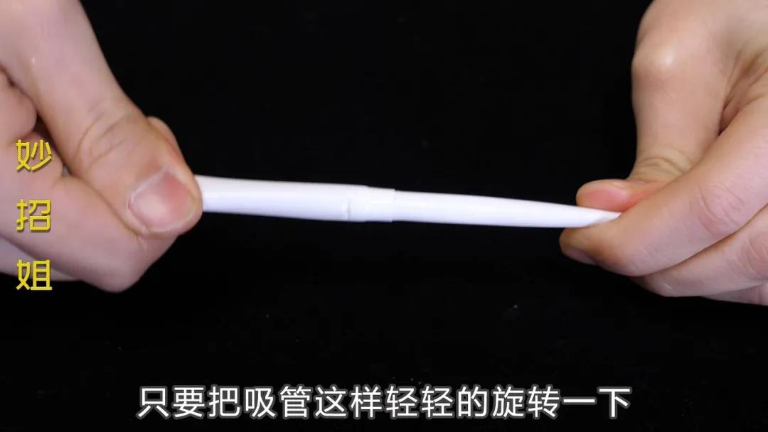 那么平时我们吸管拉直后,只要把吸管这样轻轻的旋转一下,吸管就会卡住