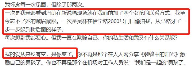 看得出来这位十年的粉丝特别心痛,还表示:以前的Kris真的吃了好多好多苦,都挺过来了。但现在的你变了,你忘记了自己从哪里来,迷失在了纸醉金迷的权贵世界里。如果人活着,底线已经低到“不违法”,那这个世界就不存在“偶像”二字。你该醒醒了,我也是。
