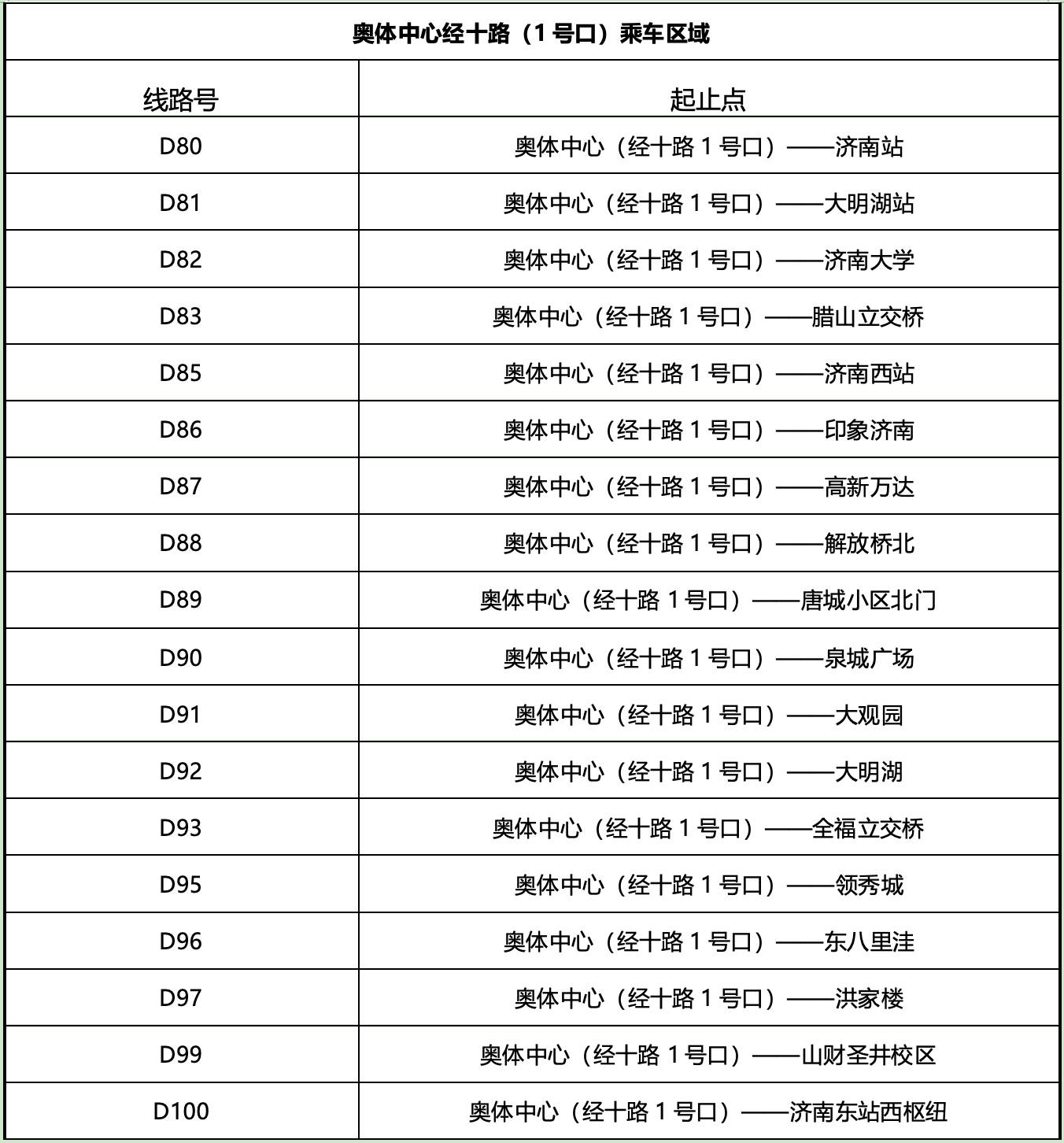线路1:大明湖——奥体中心体育场(柳康路)