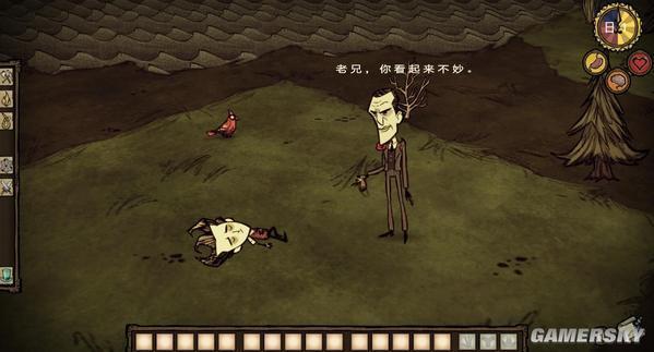 这款游戏的中文名叫《饥荒》,英文名翻译过来叫《别饿死哟》,5郎更愿意把它叫作《你不知道做什么连提示都没有可就是会莫名其妙死的100种方法》。这不是一款普通的游戏,而是生存类游戏。所谓生存类游戏,就是游戏的进展会按照“每天”来计算,你必须收集素材让自己吃饱穿暖防火防盗防被杀活过这一天,最终经过几十天到达结局。中途只要是不小心死了,那就彻底88了,完全没有存档的可能。这也是生存游戏最大的魅力,之前5郎推荐的《这是我的战争》也是非常优秀的生存类游戏!