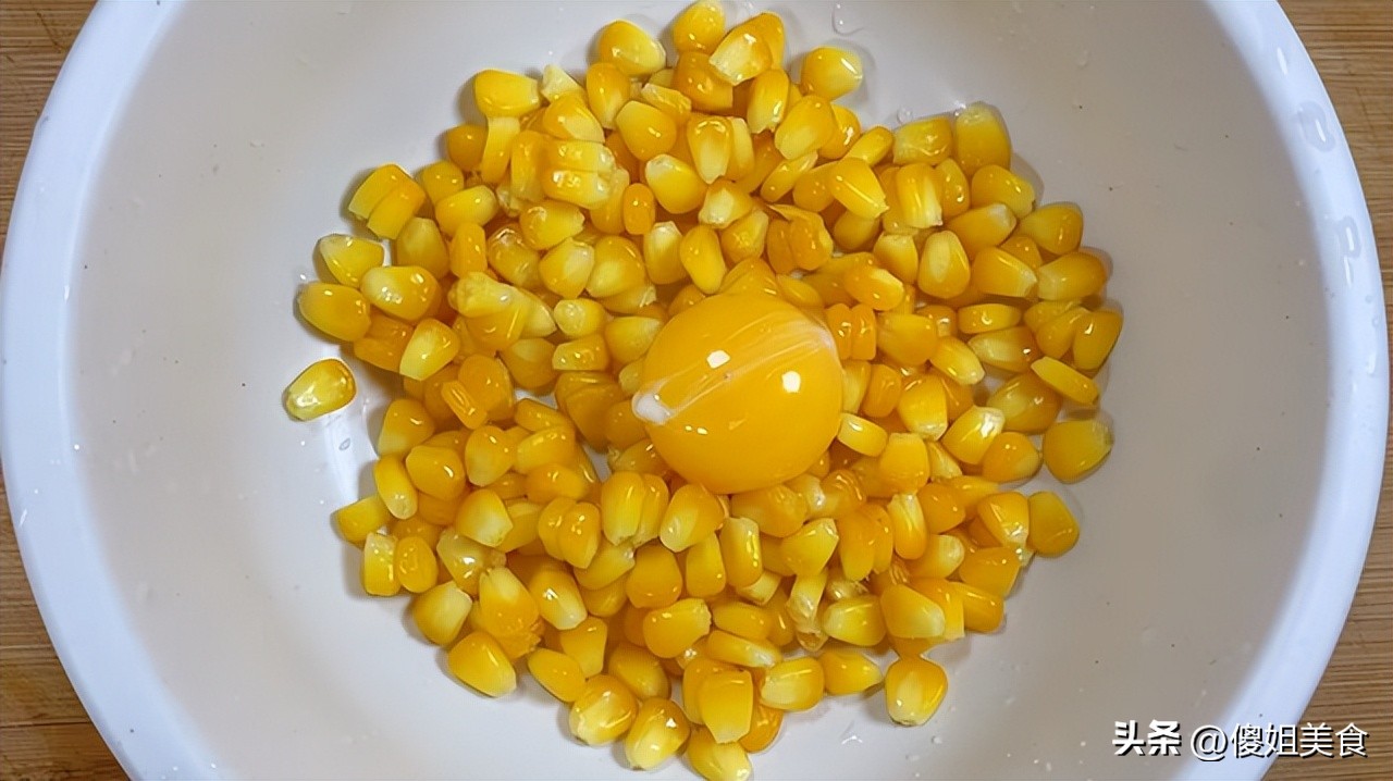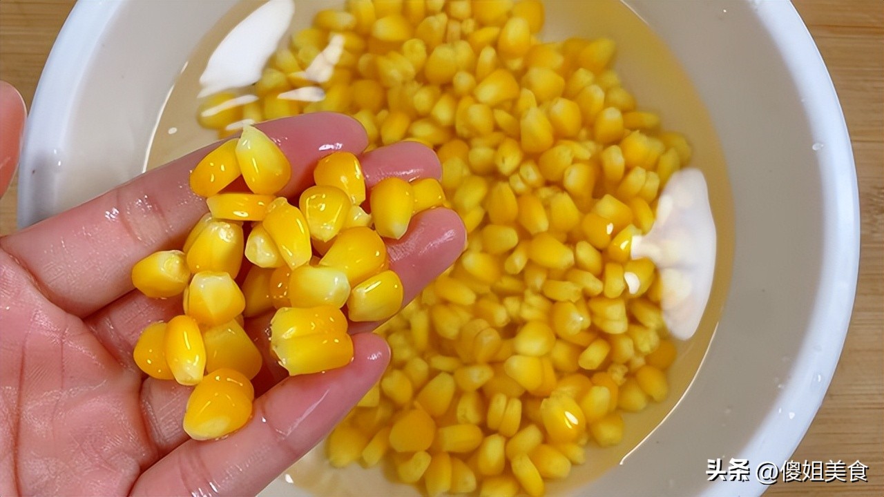 不过问题来了,水煮玉米吃两天儿子就腻了。有天刷视频看到饭店88元一份的金沙玉米粒,我突然有了灵感。翻出冰箱里冻着的玉米粒,开始在家捣鼓新菜式。