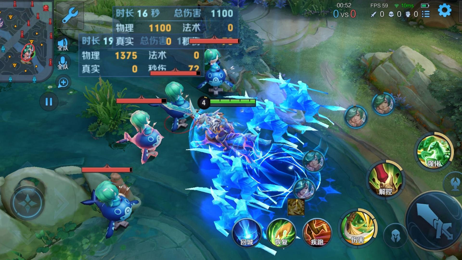 接下来就需要熟悉下基础的手感,也就是开启无限CD模式,熟悉关羽在冲锋状态下,尝试用马头去(左手轮盘控制)瞄准,并使用一技能从各个角度劈砍木桩。