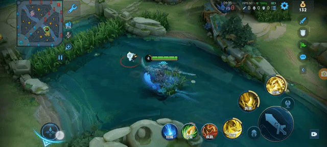 这一点主要是练习朝向锁定,因为关羽的技能和其他英雄不一样,无法通过拖拽技能按钮来瞄准,只能通过左手轮盘来瞄准。