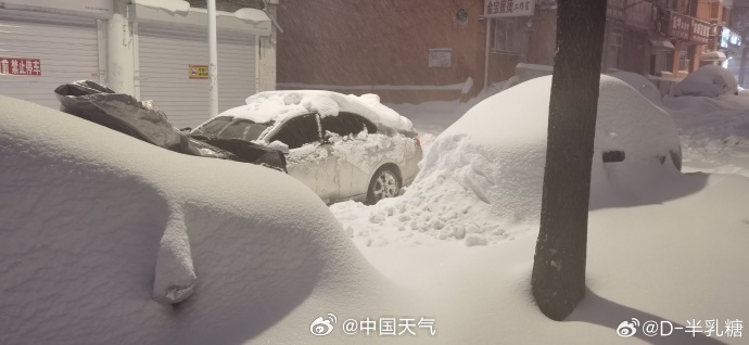 中国天气今早(11月27日)消息,昨天黑龙江北部和东部局地出现大暴雪到特大暴雪,截至今晨8时,鹤岗最大积雪深度达到48厘米,地面完全被雪覆盖,车辆几乎被雪掩埋。