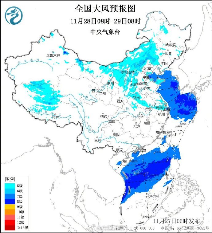 中央气象台今日继续发布大风蓝色预警:预计今天8时至明天8时,内蒙古、宁夏、陕西、山西、河北、北京、天津、河南、辽宁、山东、上海、江苏、浙江等地部分地区有4~5级、阵风6~8级的大风。