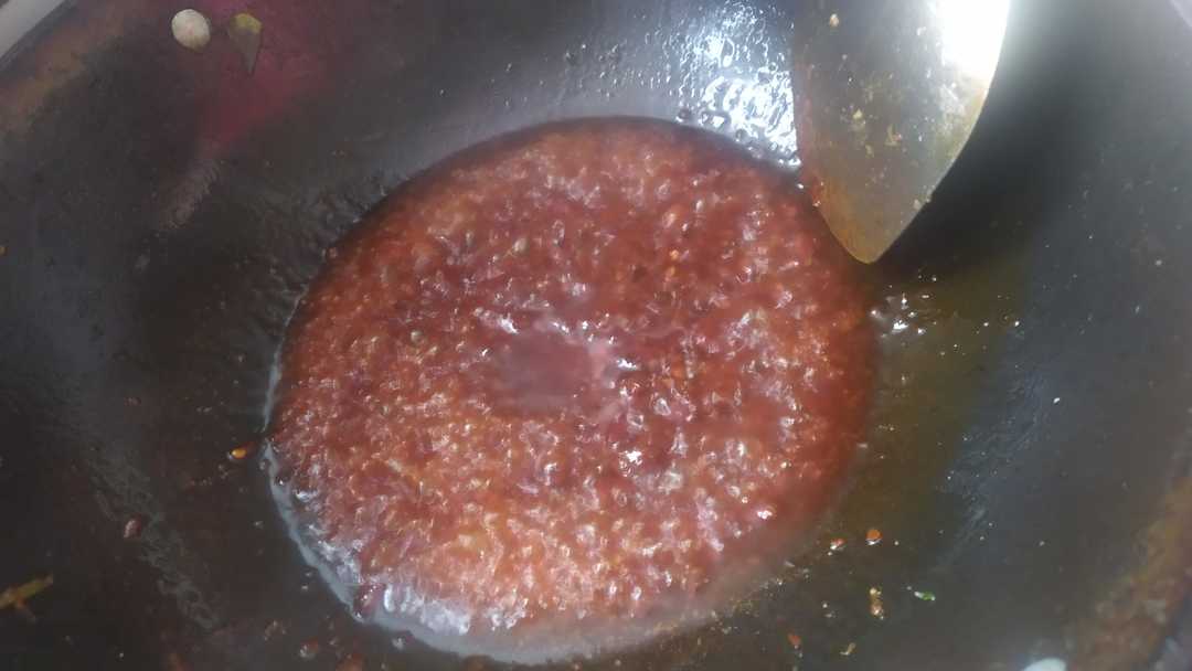 放入料汁快速翻炒,汤汁粘稠就可以出锅了。